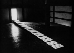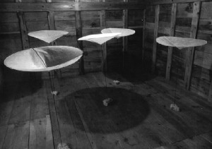 橿尾正次 「ゆらぐもの」ピアノ線・和紙・石